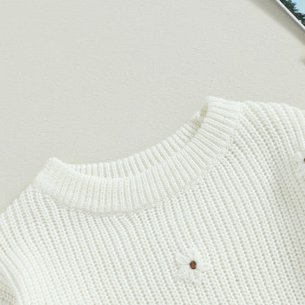 • Comfy Crewneck, Long Sleeve, Cute Flower Embroidery Sweater, Knitted, Infant Baby Newborn Girls Toddler Girls Fall Winter Pullover Knit Sweater Tops Clothes