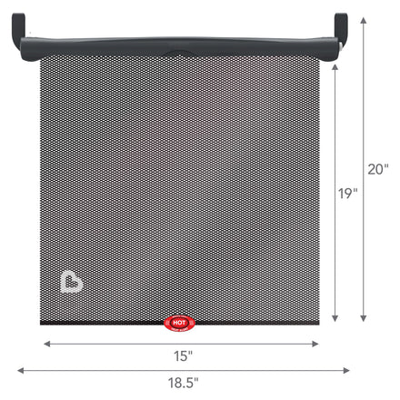 Details: An easy to use, retractable car shade that blocks the sun and features a White Hot patented heat alert system that turns white when car is too hot.