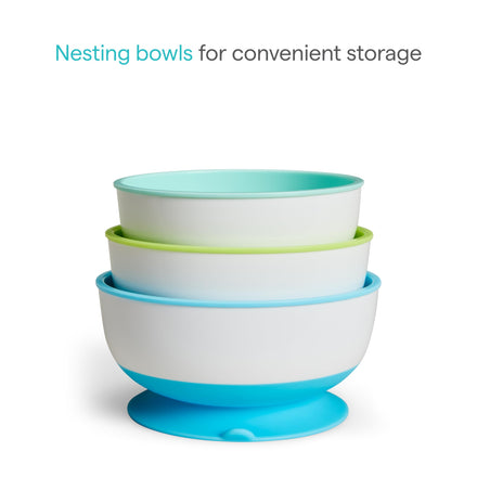 - Includes three suction bowls with matching lids - mealtime essentials for breakfast, lunch, dinner, and snacks