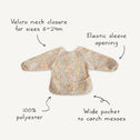 • Designed for Comfort: Made with 100% Polyester and 100% Cotton Trim, the soft long sleeve bib's wide pocket easily catches food while the bib stays secure and fully covers outfits. With a velcro closure at the back of the neck, it's perfectly sized for littles between 6 and 24 months.