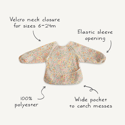 • Mess & Worry Free: Keep the kids clean at mealtimes, during art projects or in other messy moments with the mushie water resistant long sleeve bib.
