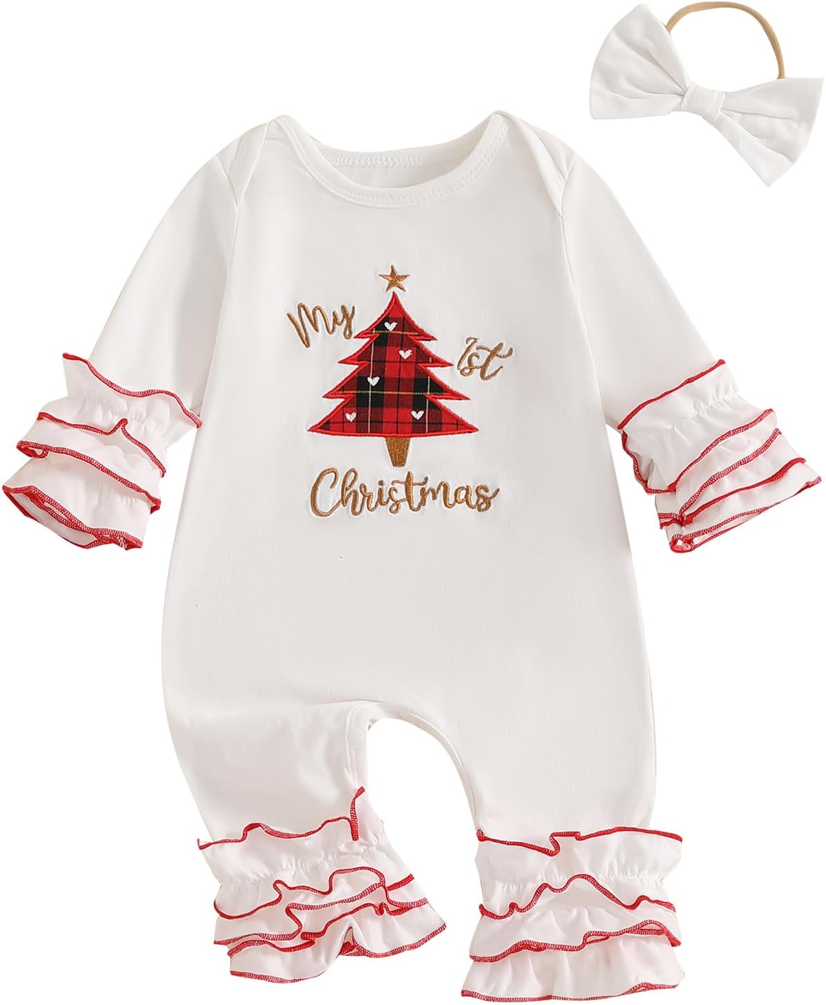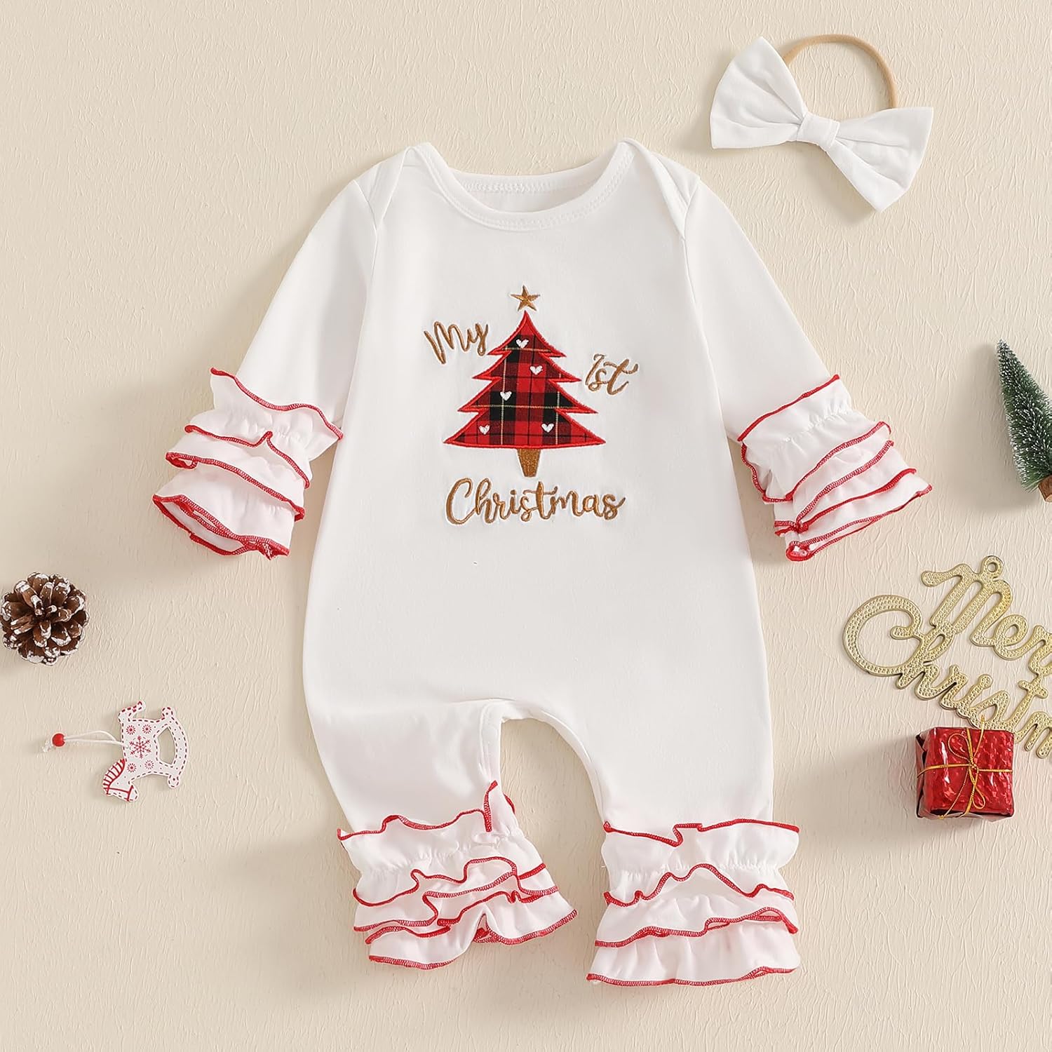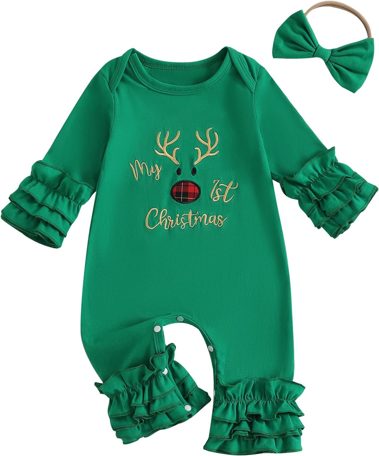 • Feature: infant newborn baby girl christmas outfit santa claus/ christmas tree/deer print long sleeve christmas romper bodysuit onesie jumpsuit one piece fall winter clothes,ruffle design make your baby look lovely and cute