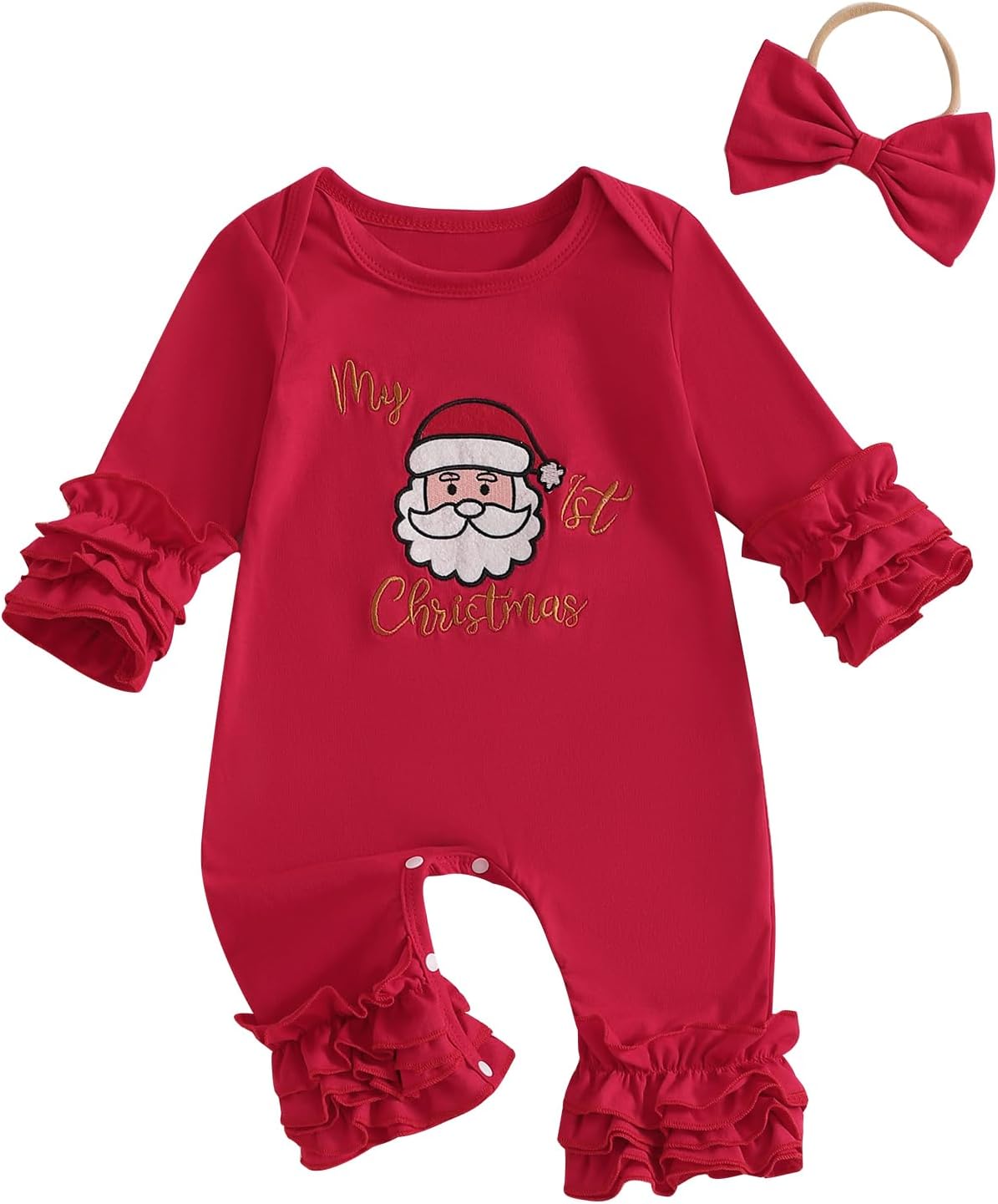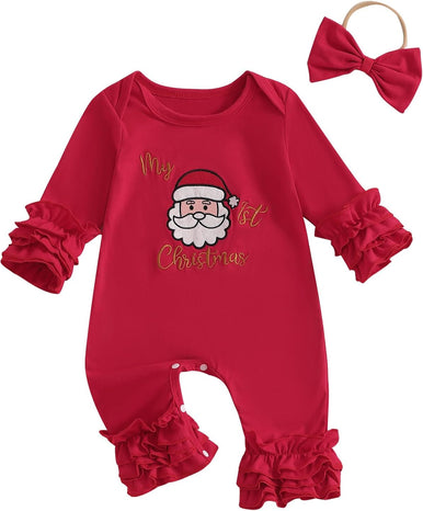 My First Christmas Baby Girl Outfit Santa Long Sleeve Romper Jumpsuit Onesie Christmas Newborn Girl Outfits Clothes