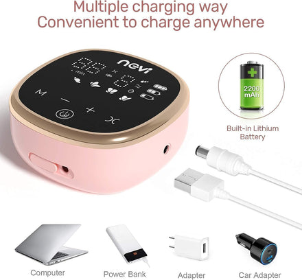 • BATTERY POWERED 🔋 : NCVI double breast pumps 2200mAh lithium battery allows it to run for up to three times without needing to be charged. It can be charged using power banks, computers, or a car adapter. You can go worry free about the usage of product when out of home or suffering a power out