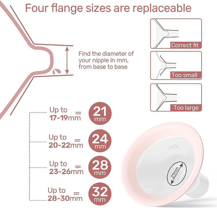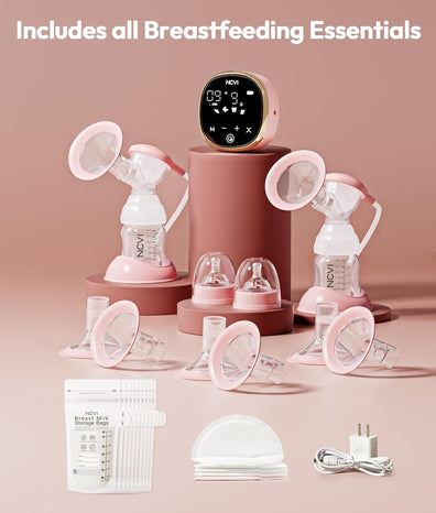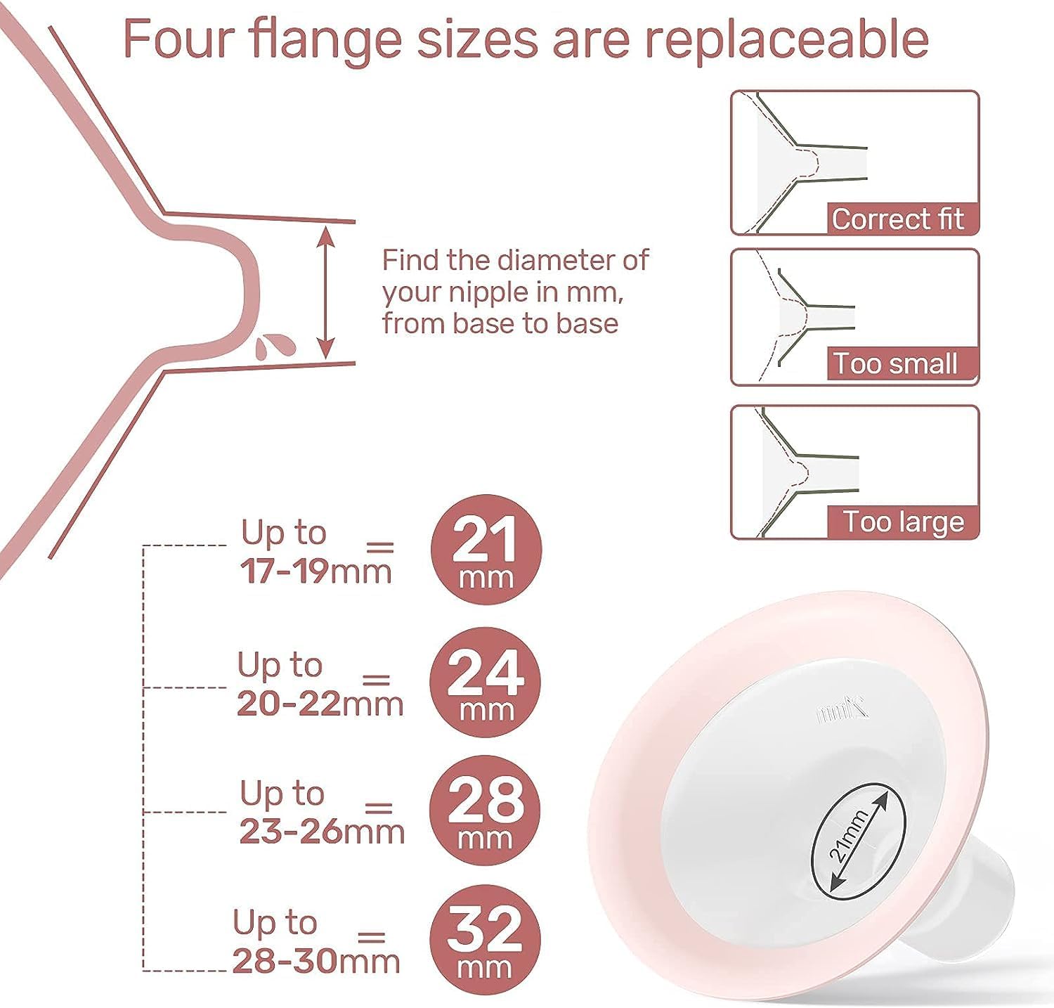 HD Mirror Touch Panel NCVI electric breast pumps for moms comes with 4 modes and 9 levels. Noise belows 40 dB Moms can easily switch single or double pumps. Pump is designed to work quitely below 40 dB. You can charge it by mutiple sources like mobile power bank or computer or car adapter Four Sizes Flange Include NCVI breast pump is designed a closed system to prevent breastmilk to flow back to motor Accessaries Include 10 Breastmilk Storage Bags & 6 Nursing Pads included. We prepared breastfeeding accessaries for you. Diaphragm Tubing Flange Duckbill Valve Bottle with Nipple Nursing Breast Pads Breastmilk Storage Bags How do I prepare for pumping? 1. Make sure all parts of breast pump are installed correctly. 2. Make sure pump is fully charged. 3. Find a comfortable place to sit down. 4. Massage the breast before pumping to get more breastmilk. What size flange will I receive? How do I choose the right size of flange? Our breast pump box includes flanges in four sizes(21/24/28/32mm), two of each. You can measure your nipple by a ruler or measuring tape. Then choose the right flange. Where can I get replacement parts and bottles? You can find all replacements in our Amazon store. All parts in the list are compatible with this breast pump. How should I wash the breast pump? Different parts should wash differently. These plastic parts, like pump body, bottle, bottle cover, are dishwasher safe. For other silicone parts, please refer to the manual for specific instruction.