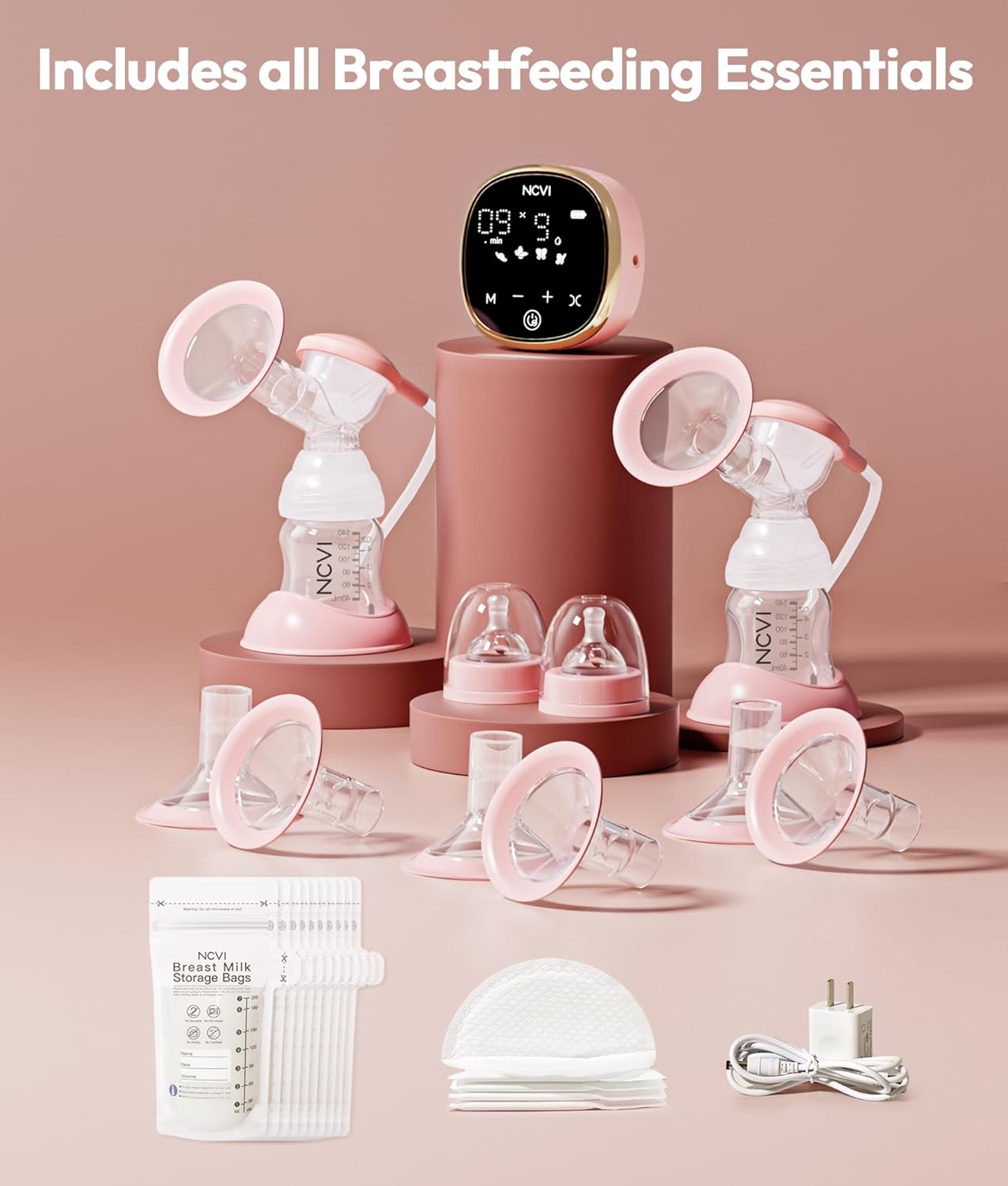 NCVI Electric Breast Pump 8782, Portable Hospital-Grade Double Pump with 4 Modes & 9 Levels, Anti-Backflow, Rechargeable Quiet Breastfeeding Pump for Efficient Comfortable Use at Home, Work or Travel