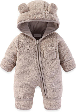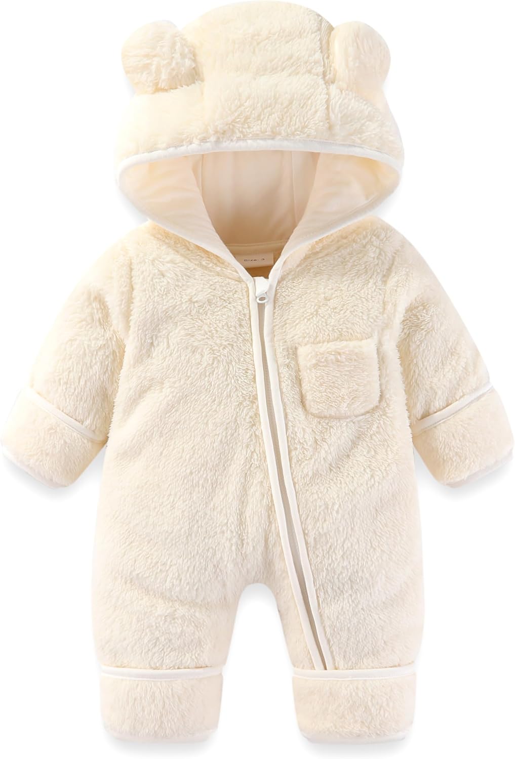 • Universal Use:Don't let cold weather stop you and your baby from enjoying outdoor activities. With the AiWMGL newborn winter hooded romper, you can be sure your little one stays warm and comfortable while exploring the outdoors. The thick fleece warm baby bear outfit with mitten footies also a birthday or any holiday wear for baby boys girls aged 0-3 months, 3-6 months, 6-9 months, 9-12 months.