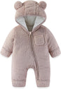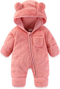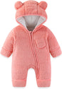 • Unique and Stylish Appearance Design:There are 4 different colors of one romper baby bear outfit to choose from. The adorable, animal-themed baby fleece jumpsuit has an all-match solid color design and a bear ear hood that'll protect your baby's head from wind and cold. The piping design and chest pocket design give this baby winter romper jumpsuit a unique and stylish look.