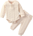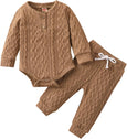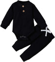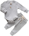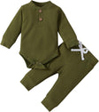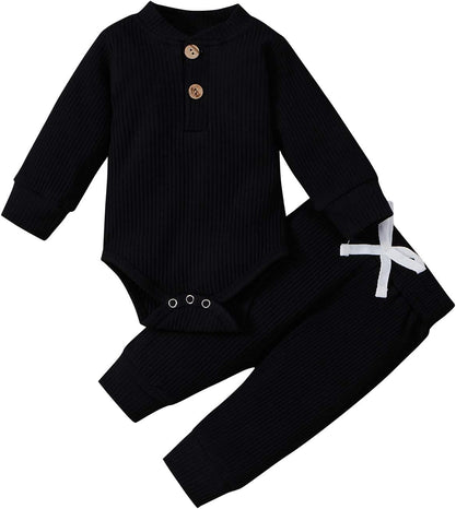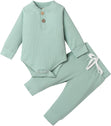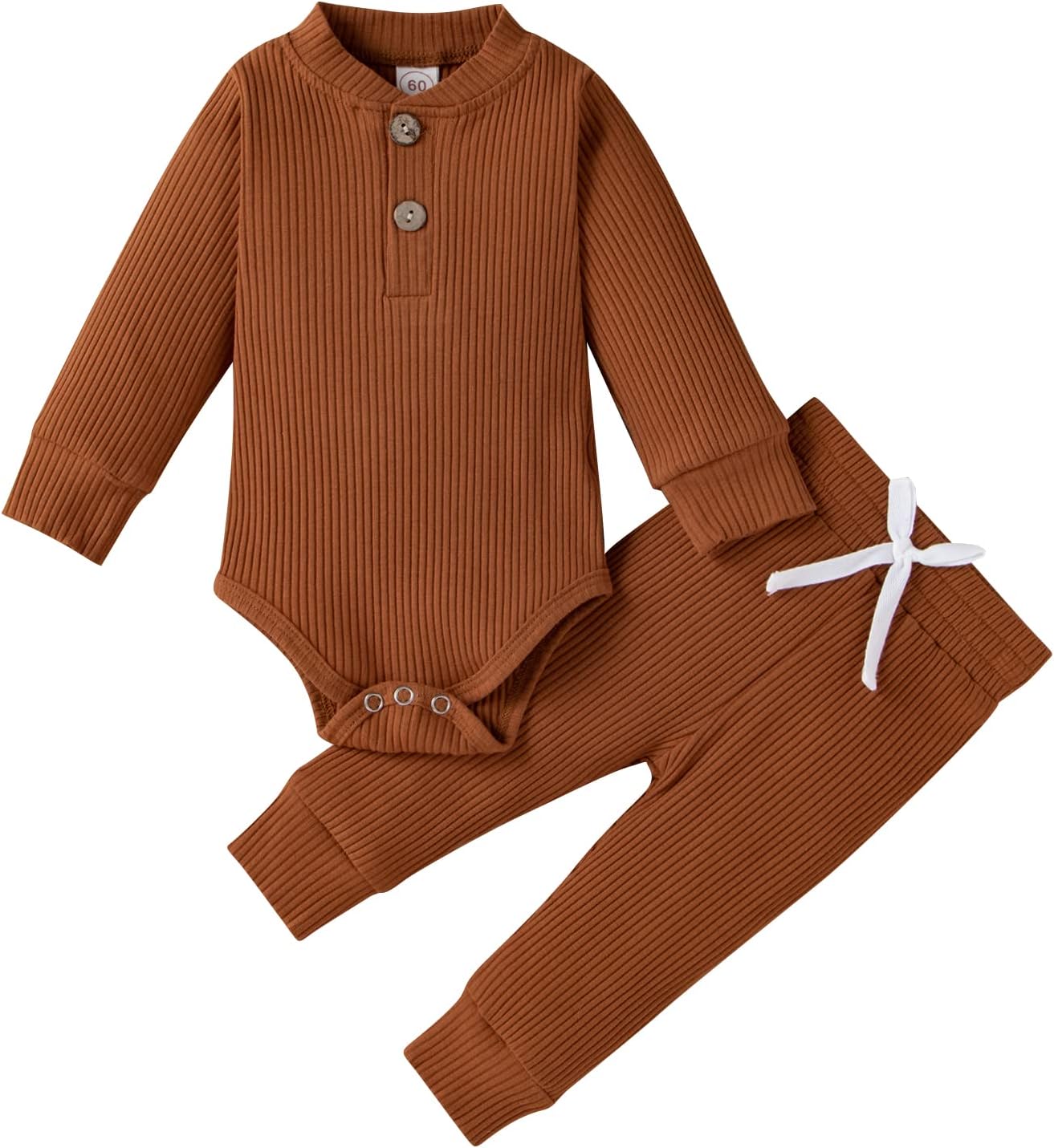 Newborn Baby Boy Girl Clothes Ribbed Knitted Cotton Long Sleeve Romper Long Pants Solid Color Fall Winter Outfits