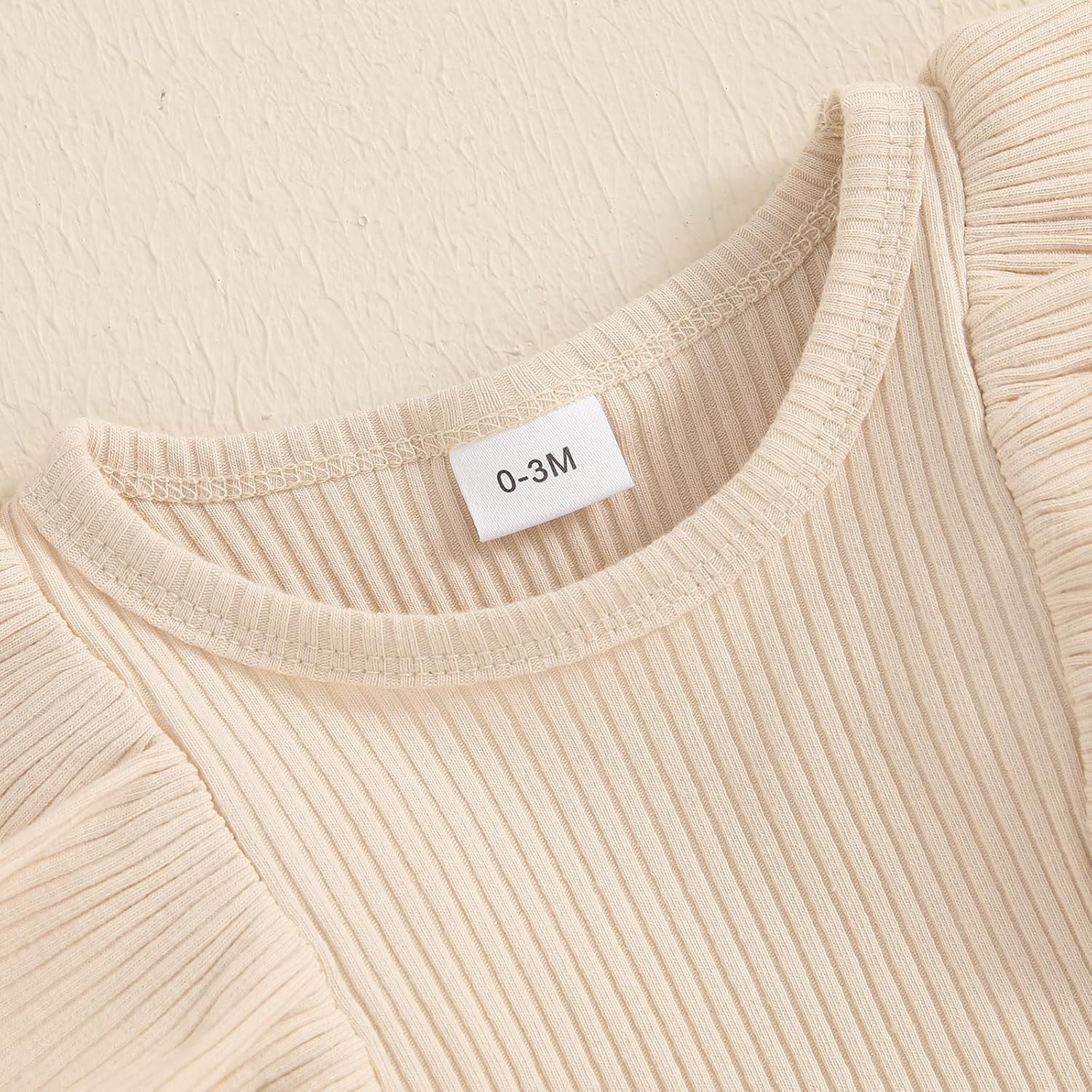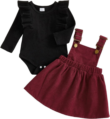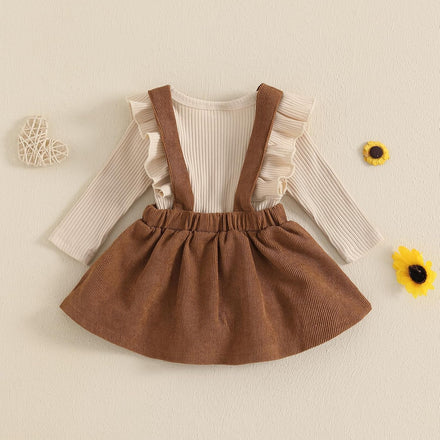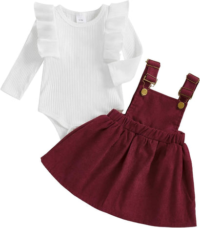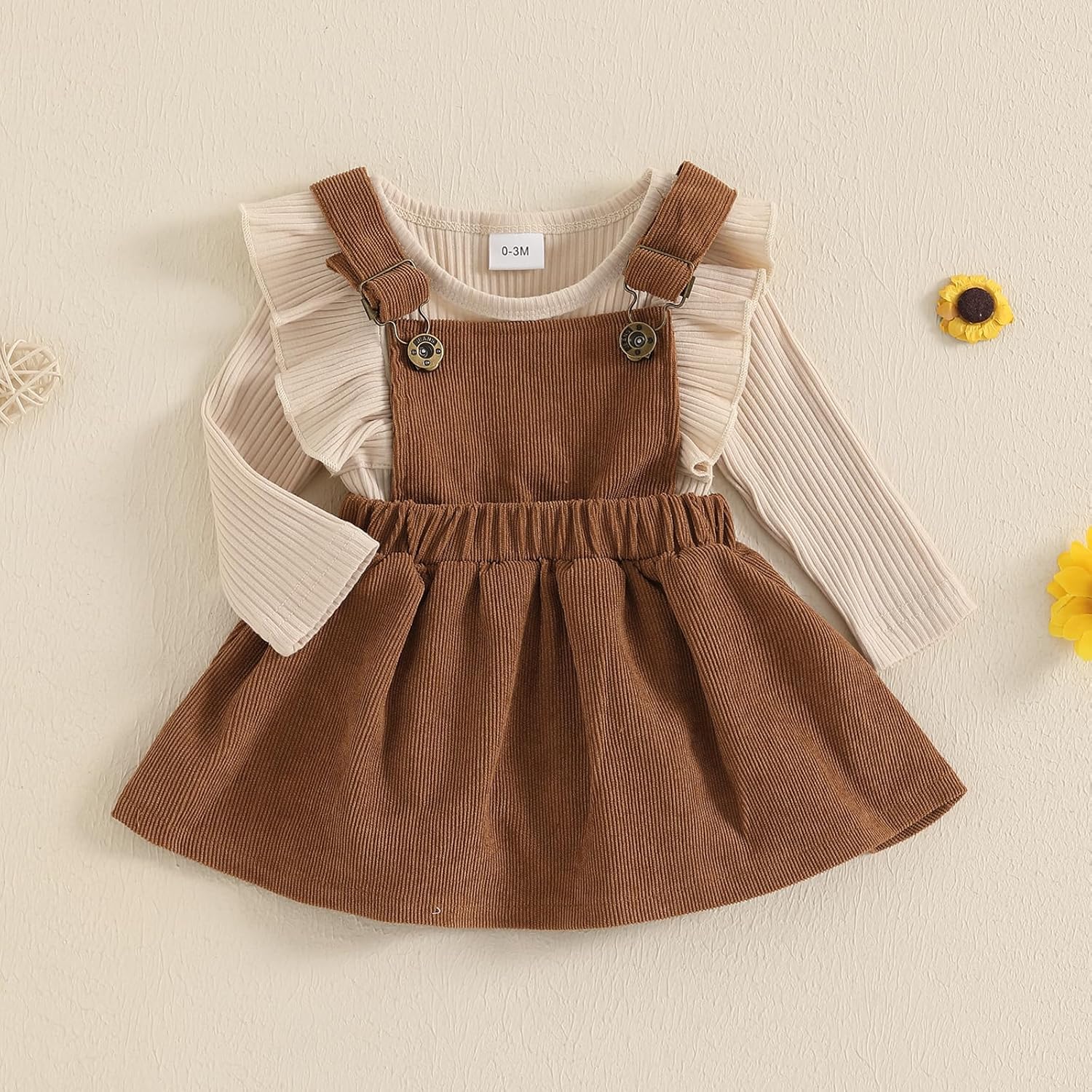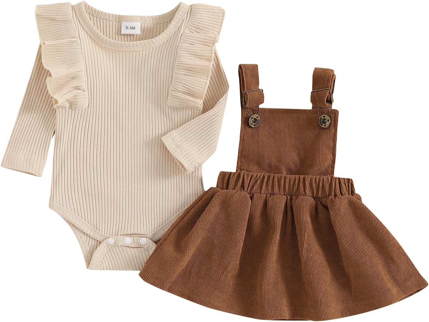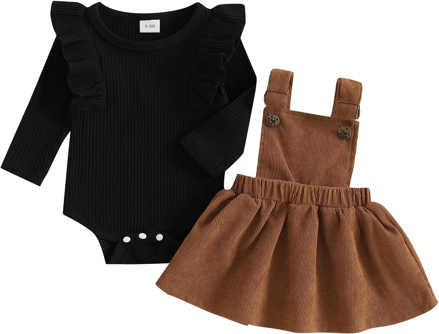 Newborn Baby Girl Outfits Ruffle Long Sleeve Ribbed Romper Corduroy Suspender Skirt Overall Dress Fall Clothes