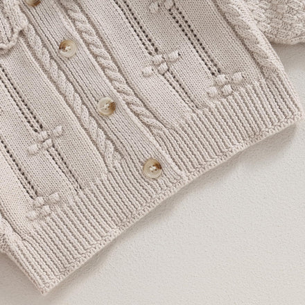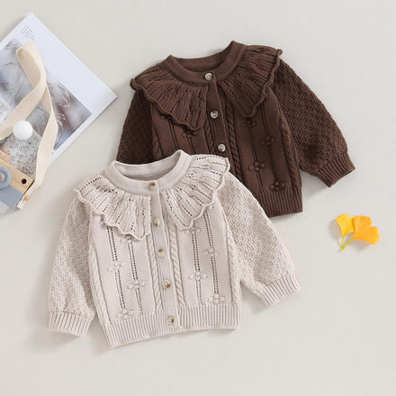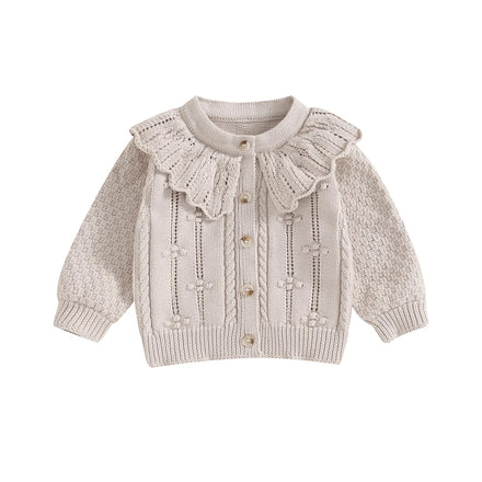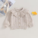 Newborn Baby Girls Knit Cardigans Long Sleeve Crewneck Hollow Knit Thin Sweater Toddler Button Tops Coat Outwear (Apricot-Doll Collar, 6-12 Months)