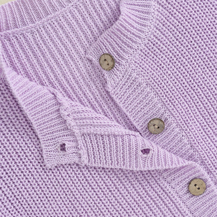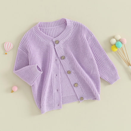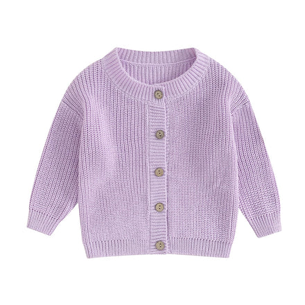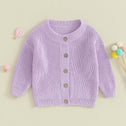 Newborn Baby Girls Knit Cardigans Long Sleeve Crewneck Hollow Knit Thin Sweater Toddler Button Tops Coat Outwear (Purple Cardigan, 12-18 Months)