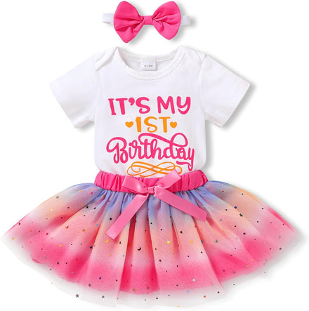 • The fabric is soft and comfortable, suitable for 1 year old baby's skin. Special flying sleeve design, charming tutu skirt, dress up your little princess with it, it will definitely attract more attention at birthday parties.