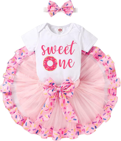Newborn Baby Girls My 1st Birthday Dress Infant Shiny Printed Sequin Bowknot Tutu Princess Dress
