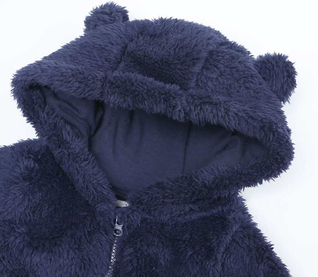 • 【Design】:Fleece cotton lined hooded care for baby's head,the design of bear ears and bear tail makes your baby look so cute,Long zipper closure convenient for pull on or take off,Zipper top is edge of hood,won't hurt baby's neck,Elastic cuffs fit the wrist,warm and comfortable.