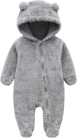 Newborn Baby Snowsuit Fleece Lined Onesie Outfits Warm Hooded Romper for Infant