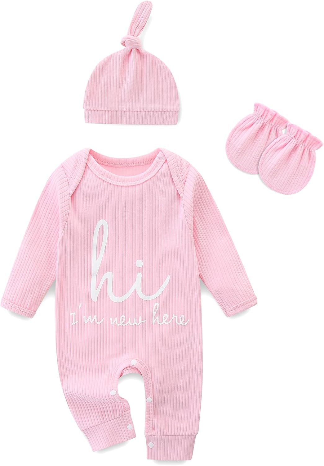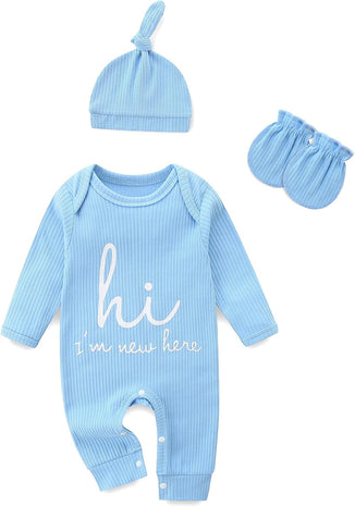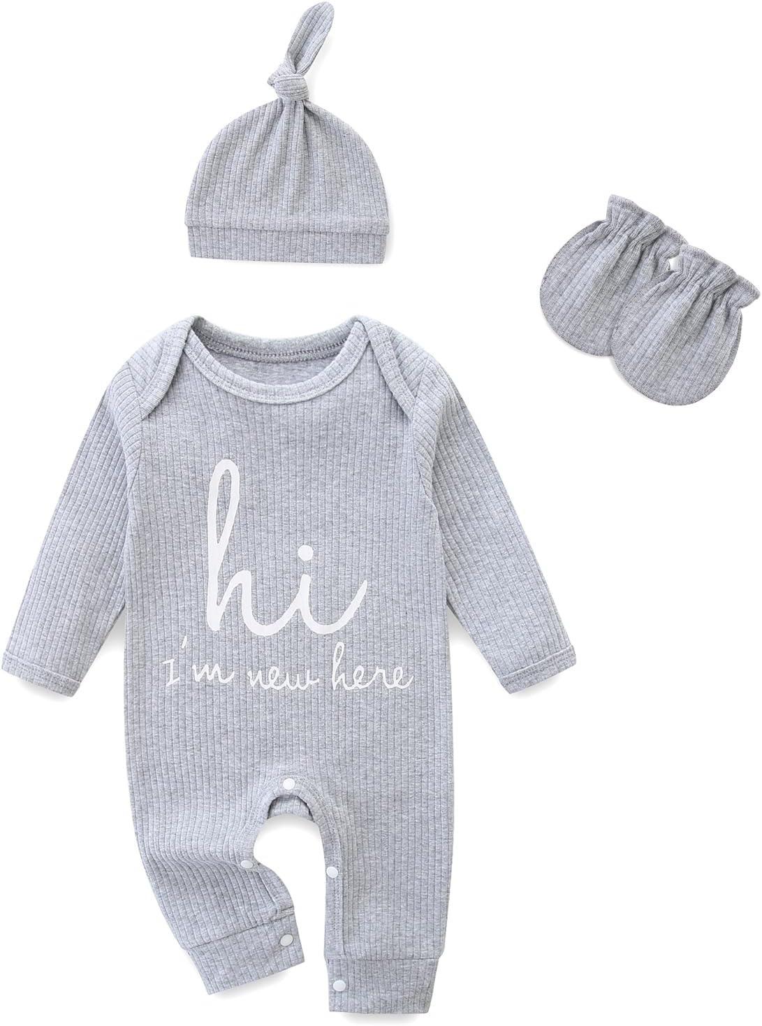 Newborn Girls and Boys Romper, Hi I’m New Here Long Sleeve Cotton Baby Clothes, Newborn Coming Home Outfit