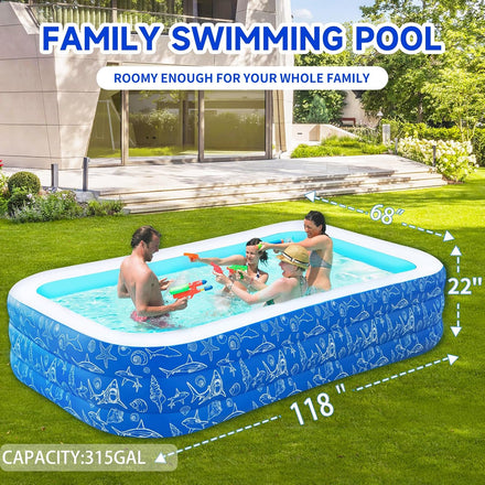nflatable Swimming Pool for Kids and Adults- 118" x 68" x 22" Family Full-Sized Blow Up Pools for Kids-Thickened Durable Above Ground Swimming Pool Backyard Lawn, Summer Party Outdoor and Indoor