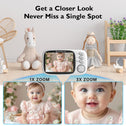 • ใ€๐˜ฟ๐™ค๐™ฃโ€™๐™ฉ ๐™ˆ๐™ž๐™จ๐™จ ๐™– ๐™๐™๐™ž๐™ฃ๐™œ, ๐˜ผ๐™ฃ๐™ฎ๐™ฉ๐™ž๐™ข๐™š!ใ€‘120ยฐ Tilt and 360ยฐ pan the camera baby monitor to scan every corner of the crib, then use the baby video monitor with cameraโ€™s 3X zoom to spot a loose pacifier or that adorable nose scrunch, all while relying on the no wifi baby monitorโ€™s encrypted signal that keeps prying eyes out of your nursery