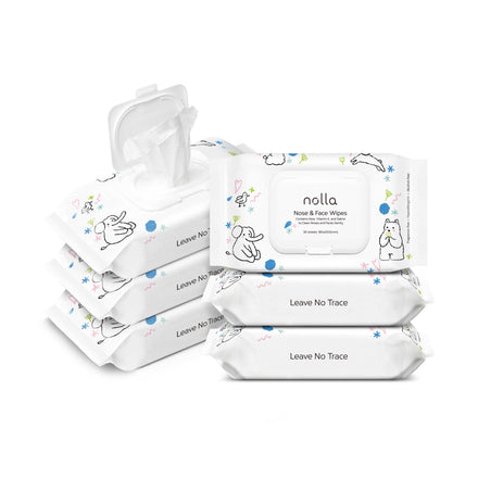 Nolla Baby Nose and Face Wipes with Saline, Vitamin E, & Aloe | Unscented | Compostable, 180 Count (6 Packs of 30)