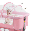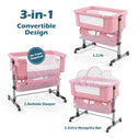 nordmiex 3 in 1 Travel Baby Crib,Baby Bed with Breathable Net,Adjustable Portable Bed for Infant/Baby with Detachable Mosquito net and Mattress,Pink