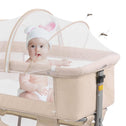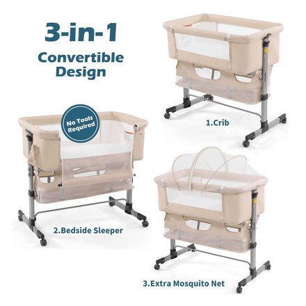 nordmiex 3in1 Bedside Crib for Girl or Boy, Bedside Sleeper for Baby Portable and Adjustable Crib with Mosquito net for Newborn Baby,Deep Khaki