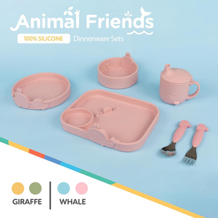 Nuby Animal Friends Silicone Sippy Cup - Toddler Cup with One-Handle - 6+ months - Pink Whale