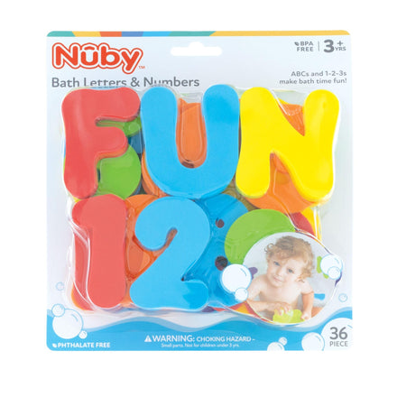 Details: Make bath time an opportunity to grow and learn for your little one with Nuby's Bath Letters and Numbers Set. Designed to engage your child's senses and challenge their cognitive development, the vibrant colored letters and numbers stick to the tub or walls when wet, creating a canvas for learning in your own home. The bath set includes all 26 letters and 10 numbers in bright colors and fun shapes. Getting clean has never been more fun with the Nuby Letters and Numbers Bath Set!