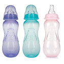Nuby Non-Drip Standard Neck Bottles, 10 Ounce, Colors May Vary, 3 Count (Pack of 1)