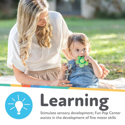 • COGNITIVE DEVELOPMENT: Multiple textures and fun turtle shape captivate baby's attention and help stimulate sensory development; Fun Pop Center assists in the development of fine motor skills