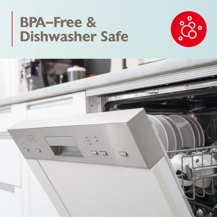 - BPA-free; dishwasher-safe (top rack only), made in the USA