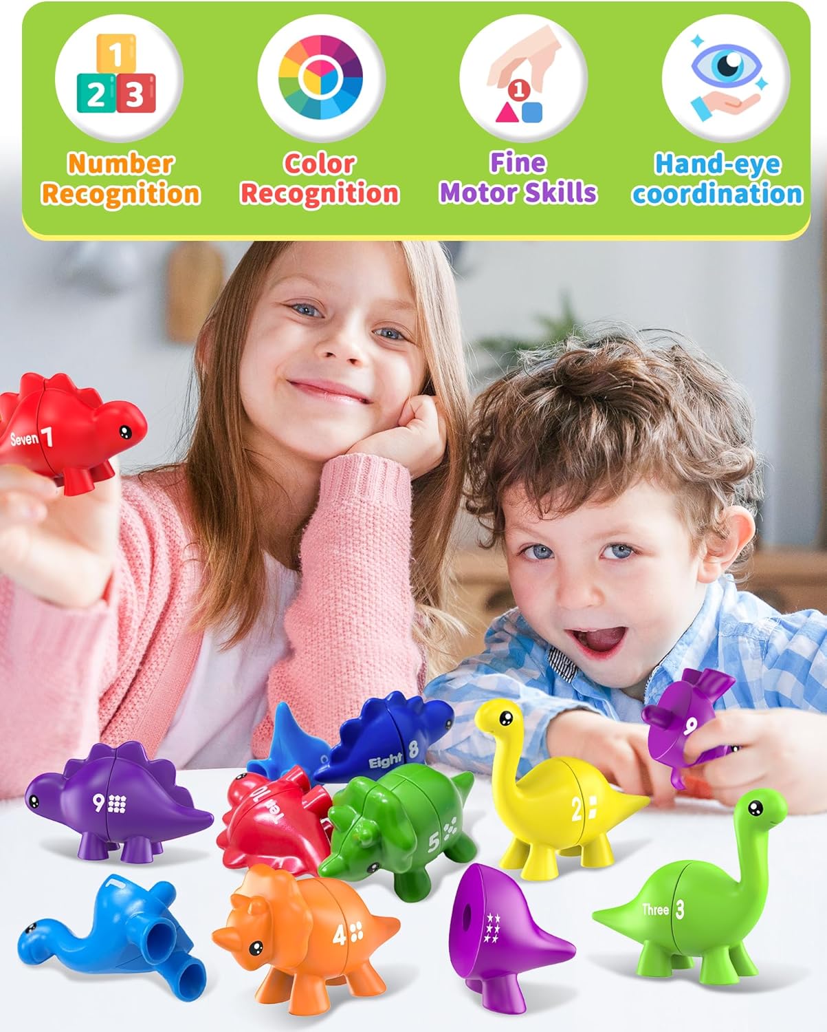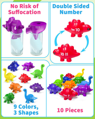 • Montessori Educational Toy for Toddlers: Designed to combine fun and learning, it encourages early number recognition and counting skills. The dinosaur toy also promotes hands-on interaction, fine motor skills and problem-solving abilities.