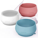 NumNum Suction Bowls for Babies & Toddlers, Extra Strong Non-Slip Suction, 100% Food-Grade Silicone, BPA-Free, Microwave & Dishwasher Safe, Baby-Led Weaning Bowl, 3-Pack With Lid, Blue/Mauve/White