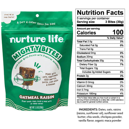 • Nurture Life Oatmeal Raisin Mighty Bites include 15 bites per bag!