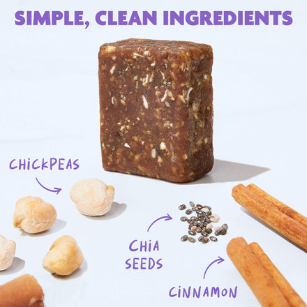 • REAL, CLEAN INGREDIENTS: Dates, oats, sunflower seed butter, maple syrup, chickpea powder, chia seeds, organic cinnamon, vanilla flavor, organic maca powder