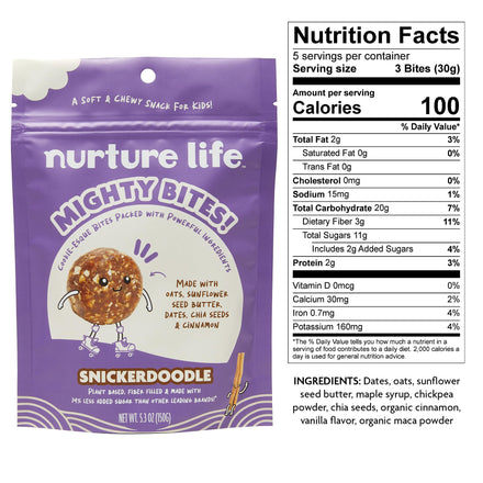 • Nurture Life Snickerdoodle Mighty Bites include 15 bites per bag!