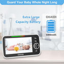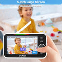 OKAIDI 5" HD Baby Monitor with Camera and Audio, 720P Display Baby Monitor, 5000mAh Battery, Remote Pan-Tilt, 3X Zoom, Night Vision, 2-Way Talk, Temperature,Lullabies,1000ft Range Baby Monitor No WiFi