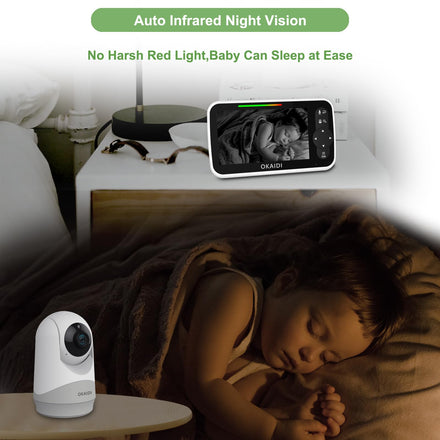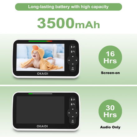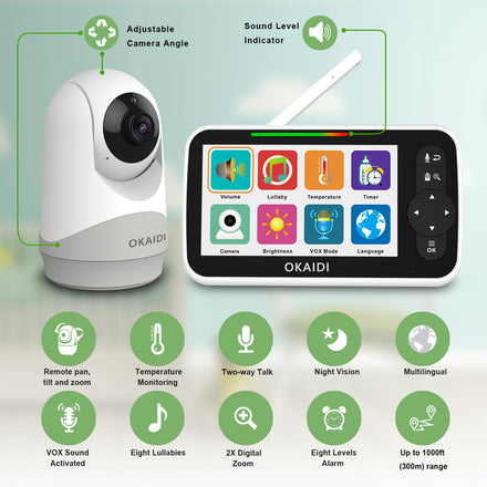 OKAIDI Baby Monitor with Camera and Audio, 5" Large Screen with 30-Hour Battery, 1000ft Range Video Baby Monitor, Remote Pan-Tilt-Zoom Baby Monitor No WiFi, Night Vision, VOX, 2-Way Talk, 8 Lullabies