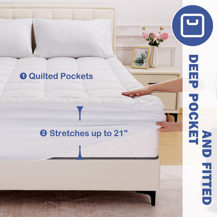 • Breathable & Elegant: Breathable queen size mattress topper keeps cooling and drying while the square pattern enhances bedding aesthetics, achieving a balance between beauty and practicality