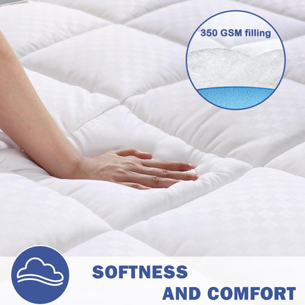 • Softness & Comfort: Enjoy plush comfort and support with polyester filling queen mattress pad that reduces pressure points for a restful sleep experience whether in the bedroom, guest room, dorm room, or anywhere else