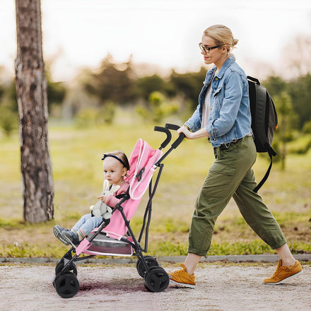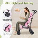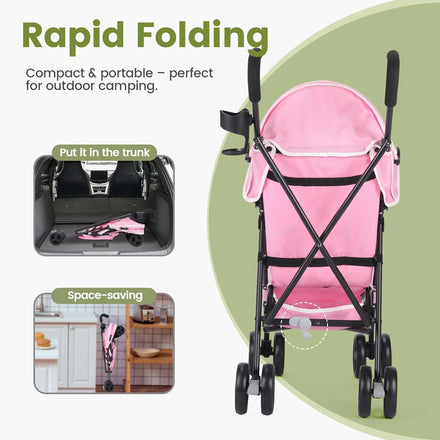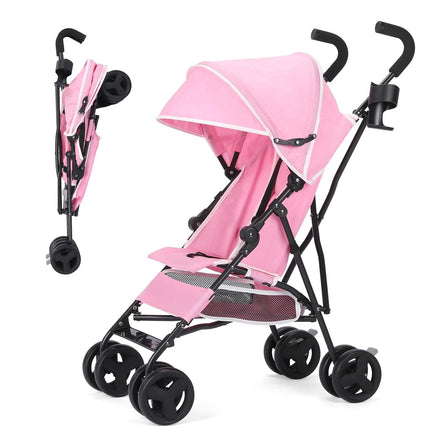 One-Handed Folding Lightweight Stroller, Large Storage Basket, Canopy, Cup Holder, Compact Umbrella Stroller Durable Frame, Travel Stroller for Airplane Ultra Overhead Friendly (Pink)