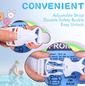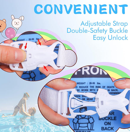 • ADJUSTABLE STRAPS: Adjustable straps offers a comfortable fit and allows the kids to swim safely; Easy on-and-off buckle let your kids just simply pull over the arms and buckle up; The adjustable back buckle allows to determine the proper secure fit