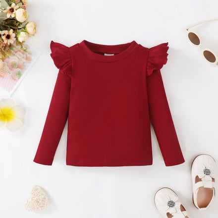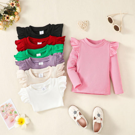 • πŸ’• Designed for baby girls: long ruffled sleeves baby tee, ribbed fabric to keep your baby girl comfortable all day long, comfortable and durable crew neck, exquisite workmanship makes this baby tshirts not easy to deform