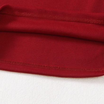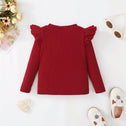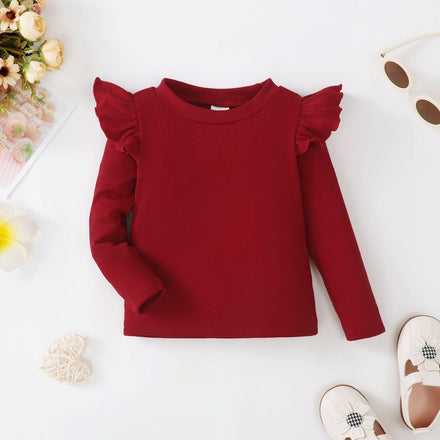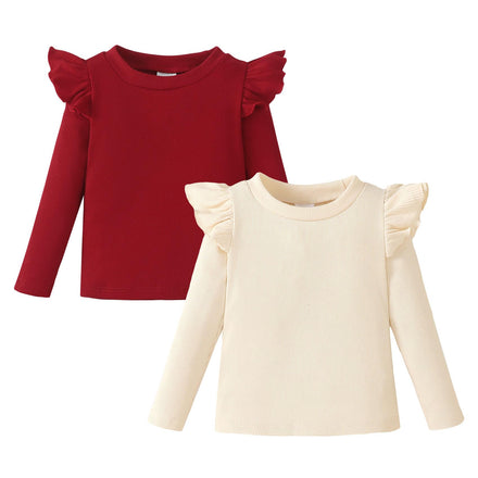 OPAWO Toddler Girl Shirts Ruffle Long Sleeve Baby Tee Tops, Ribbed Toddler Girl Blouse, Fall Baby Girl Clothes 2-Pack 12M-4T(Burgundy Apricot, 12-18 Months)