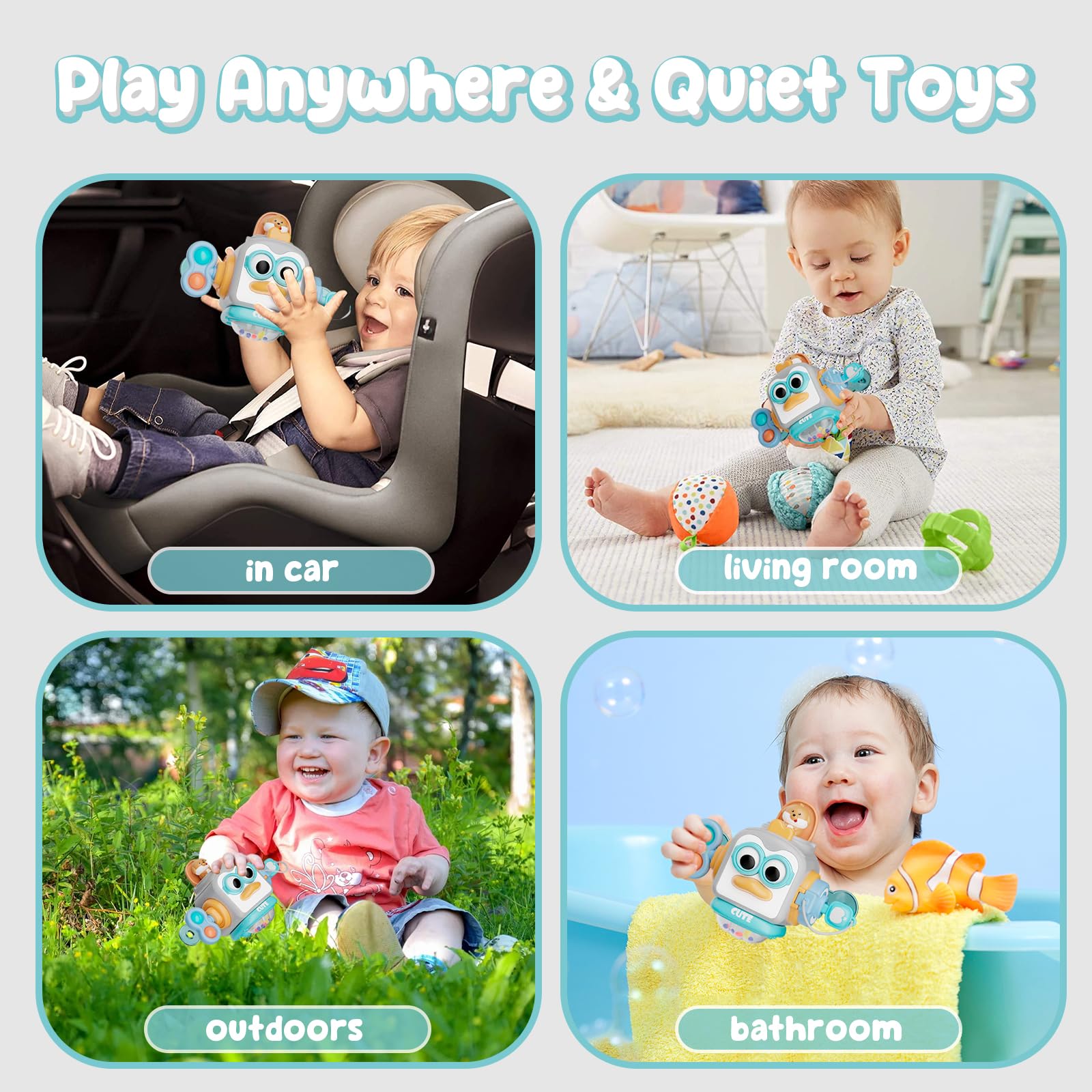 • 【Montessori Toys for 1 year old】 Osimily Montessori toy includes 6 movable panels such as a simulated faucet, simulated buckle, pressable mouths, simulated plug, fidget spinner, poping bubbles, pop up toy, ball rattle. These can develop baby's cognition, attention and learning abilities, cause and effect relationship, creativity and imagination, etc.