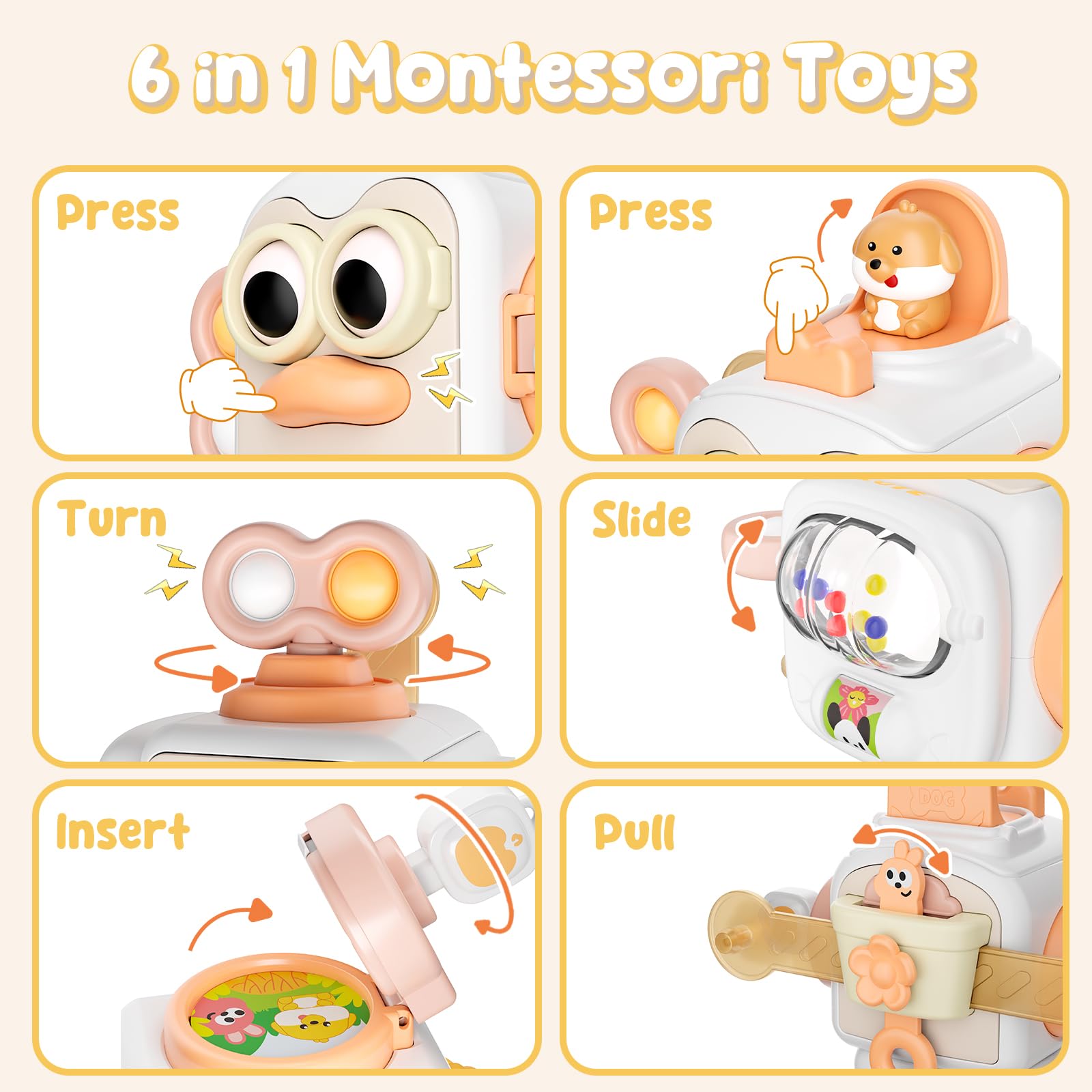 • 【Montessori Toys for 1 year old】 Osimily Montessori toy includes 6 movable panels such as a simulated faucet, simulated buckle, pressable mouths, simulated plug, fidget spinner, poping bubbles, pop up toy, ball rattle. These can develop baby's cognition, attention and learning abilities, cause and effect relationship, creativity and imagination, etc.