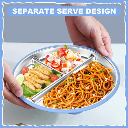 • Premium 304 Stainless Steel for Safety & Durability: Made with food-grade 304 stainless steel, these plates are BPA-free, rust-resistant, and built to last. They provide a safe and hygienic surface for your baby's meals, ensuring peace of mind for parents