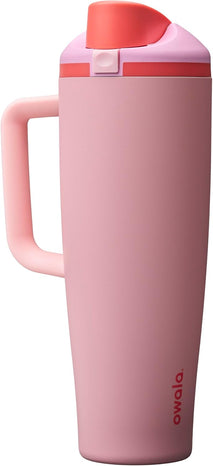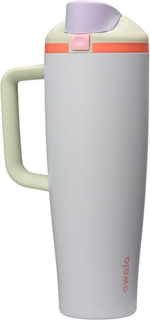 The Owala FreeSip Insulated Stainless-Steel Water Bottle with Locking Push-Button Lid easily tackles every thirst. With a built-in, easy-clean straw and a wide-mouth opening, the FreeSip reusable bottle is designed for drinking two different ways: sipping upright through the straw or tilting back to swig from the wide-mouth spout opening. Add in a push-to-open lid and playful colors, and staying hydrated has never been simpler—or more fun. Additional features include double-wall insulated stainless steel that keeps drinks cold up to 24 hours, a carry loop that doubles as a lock, a cup holder-friendly base, and a wide opening for easy cleaning and adding ice. The Owala FreeSip Insulated Stainless-Steel Water Bottle with Locking Push-Button Lid is available in three sizes: 24-Ounce, 32-Ounce, and 40-Ounce. Lid is dishwasher safe; hand wash cup. Not for use with hot liquids. Manufacturer’s limited lifetime warranty.
