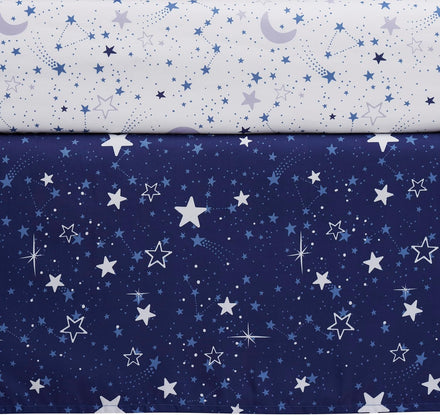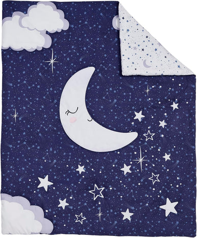 Create a celestial haven for your baby with our Good Night Moon 3 Pc Crib Bedding Set. This enchanting collection features a serene sleeping moon design, bringing a touch of celestial magic to your little one's nursery. Showcasing a peaceful and sleepy moon surrounded by twinkling stars, this set creates a calming and magical atmosphere perfect for bedtime. This crib set includes a fitted crib sheet, a cozy quilt, and a crib skirt, all perfectly coordinated to create a cohesive look.