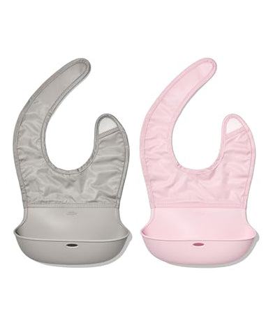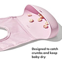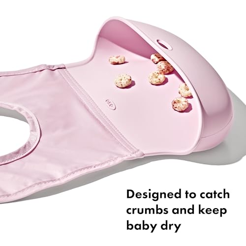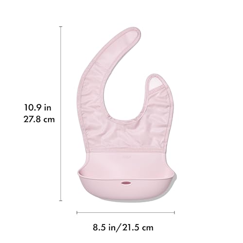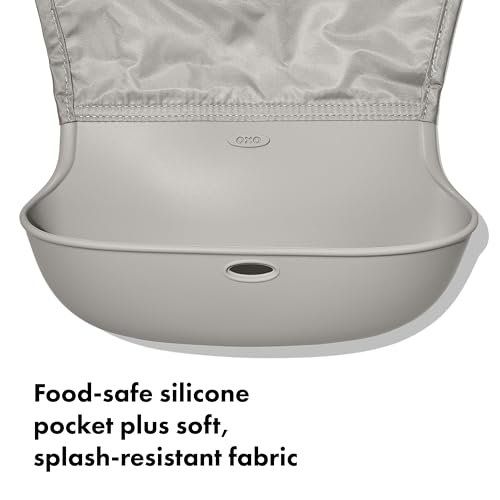 Details: Make mealtime messes more manageable with the OXO Tot Roll-Up Bib. The wide, food-safe silicone pocket catches every stray bite, while the upper fabric portion is soft and splash-resistant. The easy-to-adjust closure grows with your tot and resists tugging – so baby’s clothes stay cleaner, longer. The length is just right so that it won’t interfere with the table or highchair. The Bib rolls up for stashing in strollers and diaper bags, for mealtime, anytime. All done? Wipe down the Bib or toss it in the washing machine.